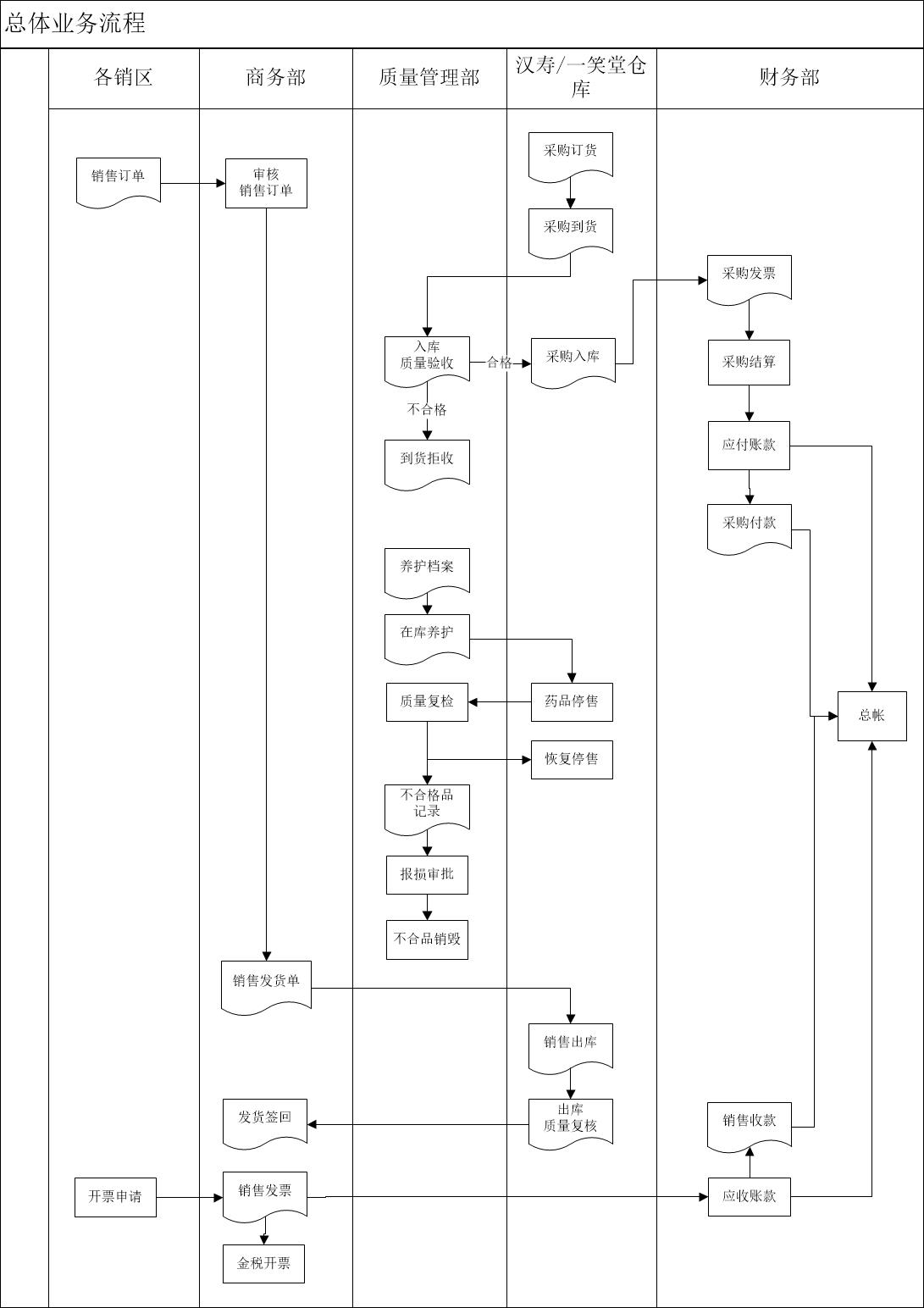 10、銷售部根據銷區寄回的銷售合同和和客戶方的入庫單生成“發貨簽回單”。發生銷售退貨時,由銷售部開具“銷售退貨單”,質量部對退回藥品進行檢驗。